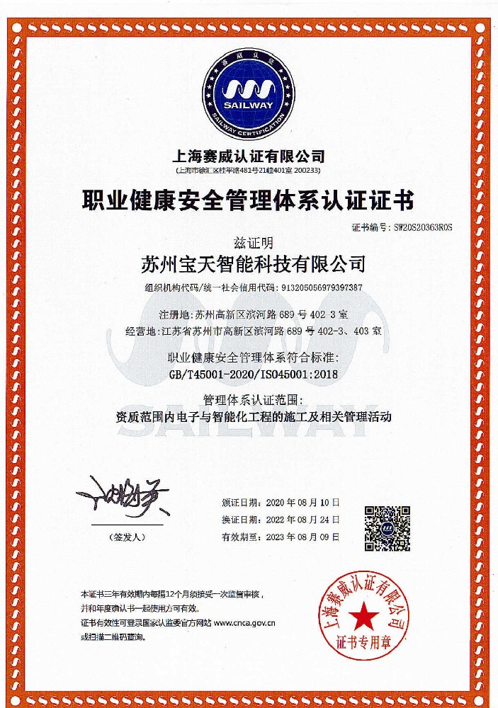 蘇州寶天智能科技有限公司,專業從事廠房、辦公智能化、信息化、安防智能化系統的實施。有數名本專業執業人員,公司實行細致的項目前期溝通、規劃,負責的項目管理、過程控制,良好友善的售后服務,多年來成功實施了眾多智能化、信息化、安防等項目。